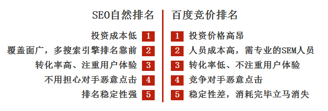 SEO優(yōu)化排名相對競價(jià)推廣方式來說,具有高性價(jià)比的優(yōu)勢,只需花少量的錢可能達(dá)到更多更好的效果,是中小企業(yè)網(wǎng)站推廣的很好選擇。