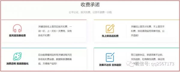 標(biāo)志一:按天扣費(fèi);標(biāo)志二:預(yù)存款項(xiàng),先上排名后扣費(fèi);標(biāo)志三:達(dá)不到排名,支持退款,當(dāng)然還包括所謂的“7天上排名”,以及‘前50-100’排名的都可以刷首頁(yè),甚至保證前三名。